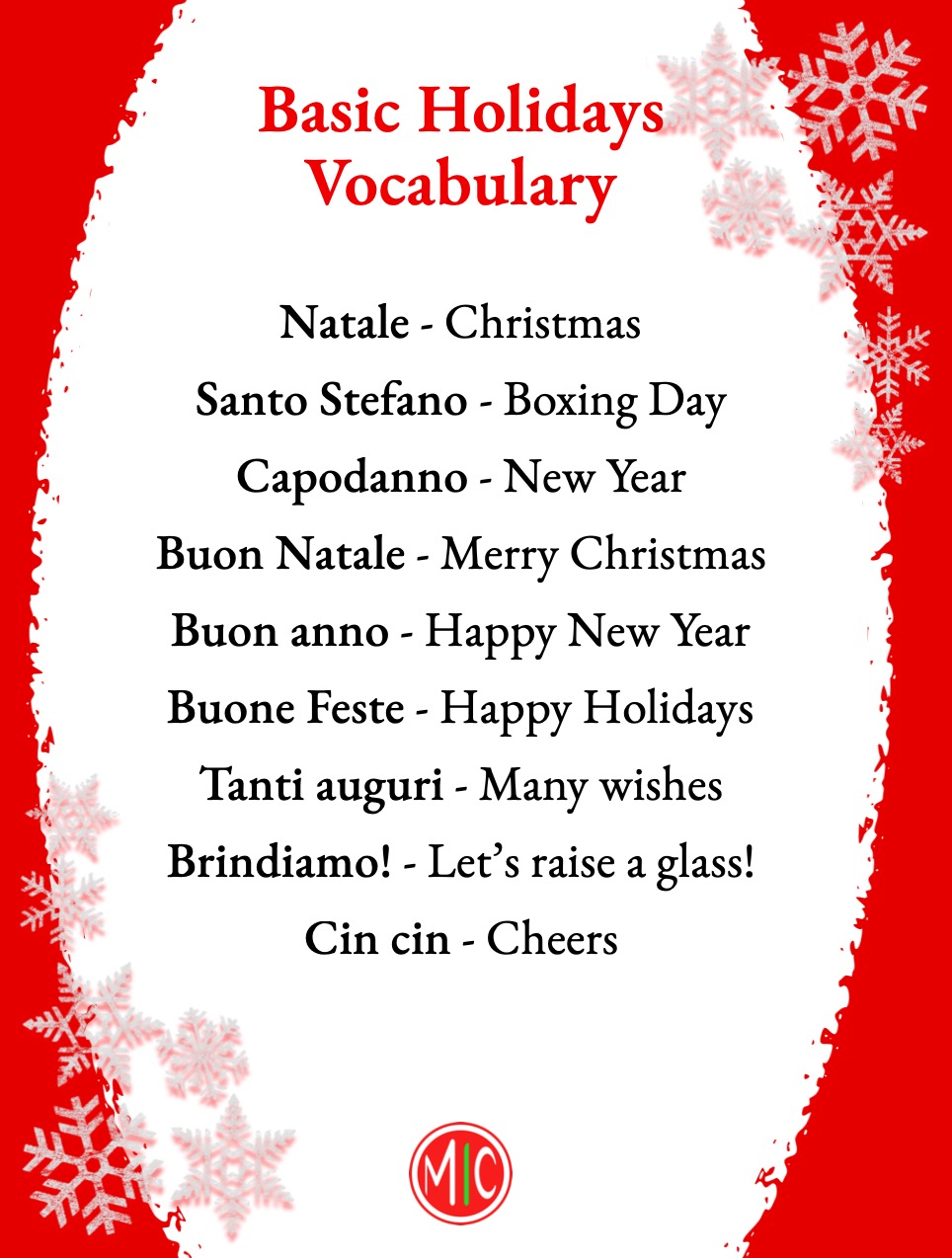 So… you are spending the holiday season in Italy, and your Italian friends have invited you over on Christmas Day. You are thrilled at the idea, but you are feeling a bit anxious because you can’t tell the difference between panettone and pandoro, and you are not sure how to wish a Merry Christmas to your friend’s parents in a polite way. Then there is the matter of New Year’s Eve, when a flood of good wishes is exchanged even with strangers, and lots of toasts are made. How to join the conversation?